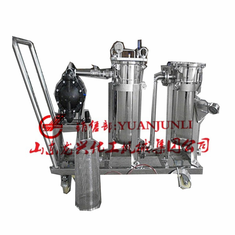 袋式過濾機(jī)是一種結(jié)構(gòu)新穎、體積小、操作簡便靈活、節(jié)能、高效、密閉工作、適應(yīng)性強(qiáng)的多用途過濾設(shè)備。袋式過濾機(jī)主要有過濾缸筒體、過濾缸蓋和快開機(jī)構(gòu)、不銹鋼袋加強(qiáng)網(wǎng)等主要部件組成。該系列過濾機(jī)是一種壓力式過濾裝置。原液由進(jìn)料口流入裝置在加強(qiáng)網(wǎng)內(nèi)的濾袋,受壓,合格品滲透濾袋,由出料口排出,進(jìn)入下道工序,雜質(zhì)顆粒被濾袋捕捉。整個過程高效、簡便,且更換濾袋十分方便,基本不產(chǎn)生物料消耗。該機(jī)適用于油漆、啤酒、植物油、醫(yī)藥用、化妝品、化學(xué)藥品、石油產(chǎn)品、紡織化學(xué)品、感光化學(xué)品、電鍍液、牛奶、礦泉水、熱溶劑、乳膠、工業(yè)用水、糖水、樹脂、油墨、工業(yè)廢水、果汁、食用油、蠟類等 。