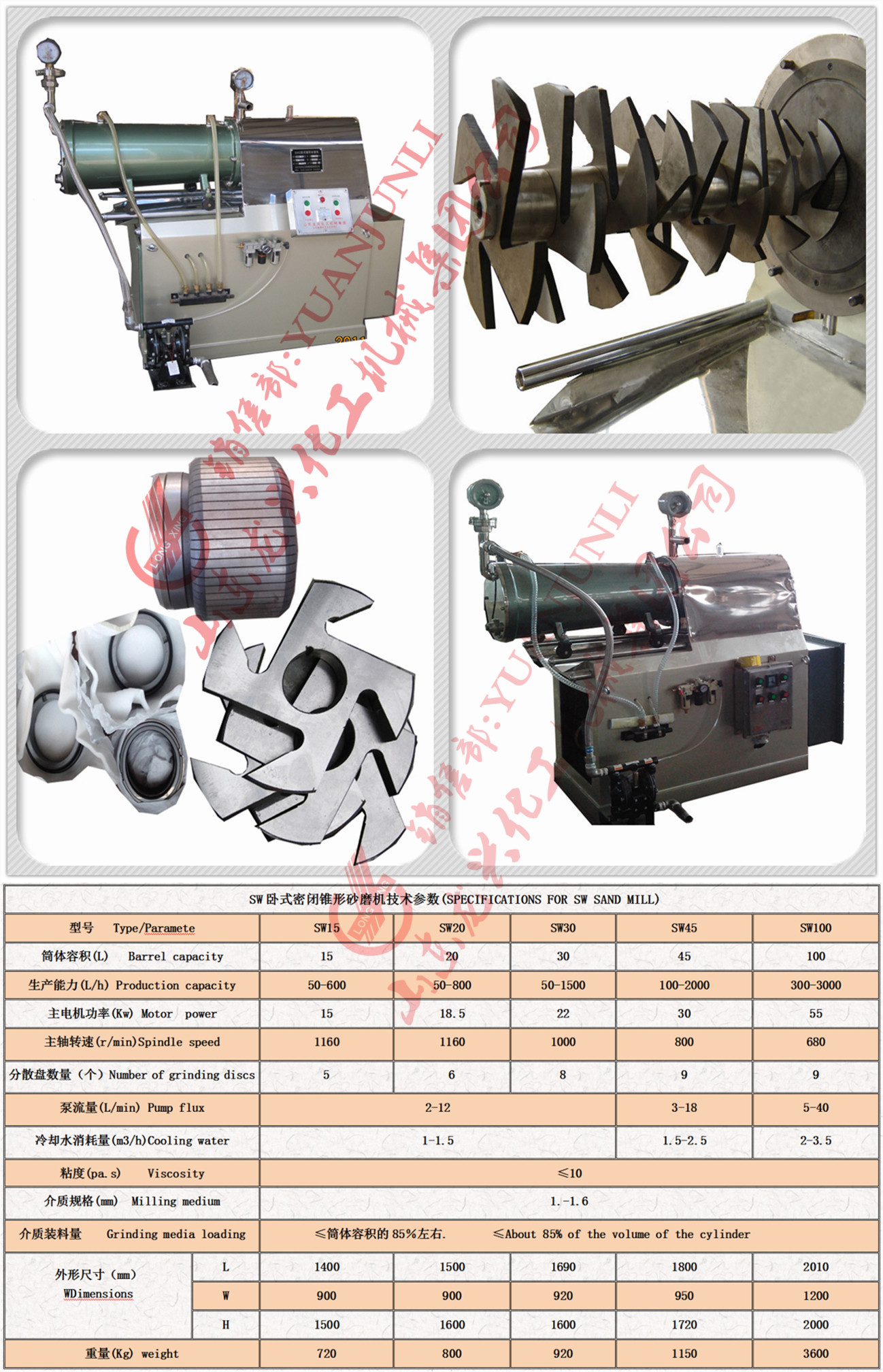 該機(jī)設(shè)計先進(jìn),密閉式濕法研磨方式使介質(zhì)磨細(xì)速度更迅速更均布,產(chǎn)品研磨分散細(xì)度均勻、品質(zhì)好,生產(chǎn)效率高。