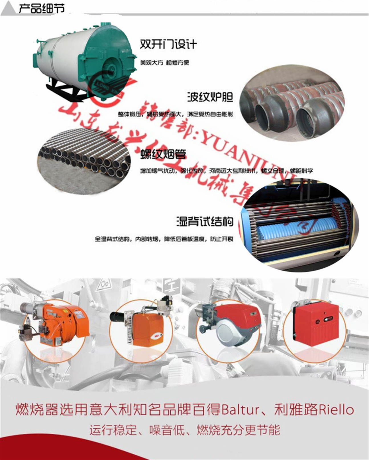 山東龍興集團是一家導(dǎo)熱油熱載體及熱水、蒸汽加熱鍋爐設(shè)備的大型集團化生產(chǎn)企業(yè),三十年來我公司致力于系列燃油、燃氣有機熱載體爐/導(dǎo)熱油爐,電加熱導(dǎo)熱油爐,燃油燃氣蒸汽鍋爐,燃油燃氣熱水鍋爐及蒸汽發(fā)生器,余熱換熱等設(shè)備的開發(fā)設(shè)計與制造。集團銷售部長原君禮現(xiàn)真誠為您推薦0.5-30噸系列燃油燃氣蒸汽鍋爐,歡迎您致電和微信(手機同號)咨詢!!